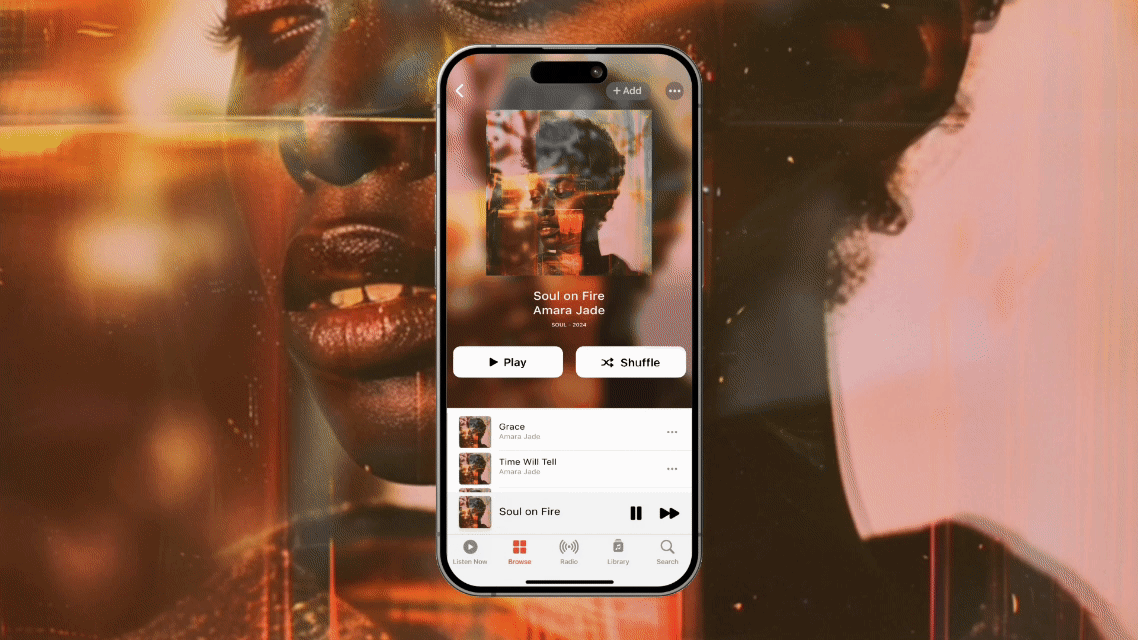 Apple Music Album Motion appears right on the artist’s release page on Apple Music, creating a multi-sensory experience that engages and deepens the connection between artists and fans.